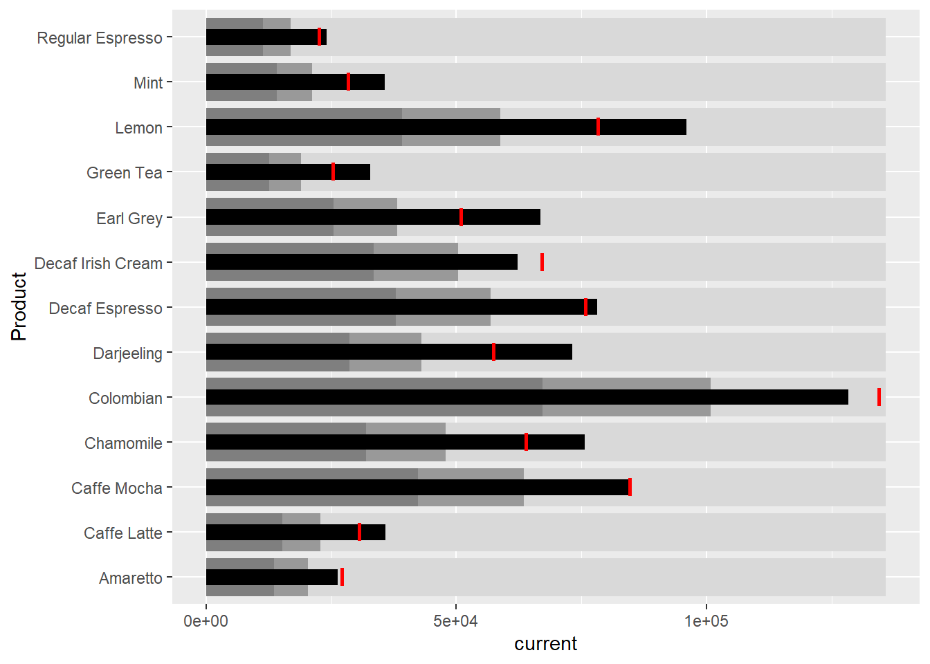 ungroup()ggplot(product, aes(Product, current)) +